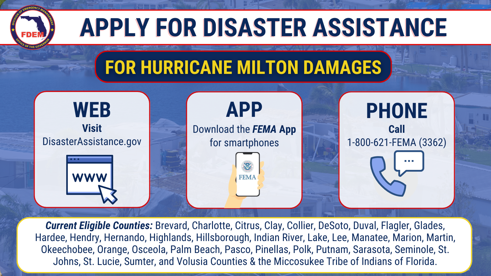 Polk County has been included in the major disaster declaration for Florida allowing citizens to access FEMA aid. Residents can get aid including grants for housing and home repairs, assistance for business owners and low-cost loans to cover uninsured property losses.